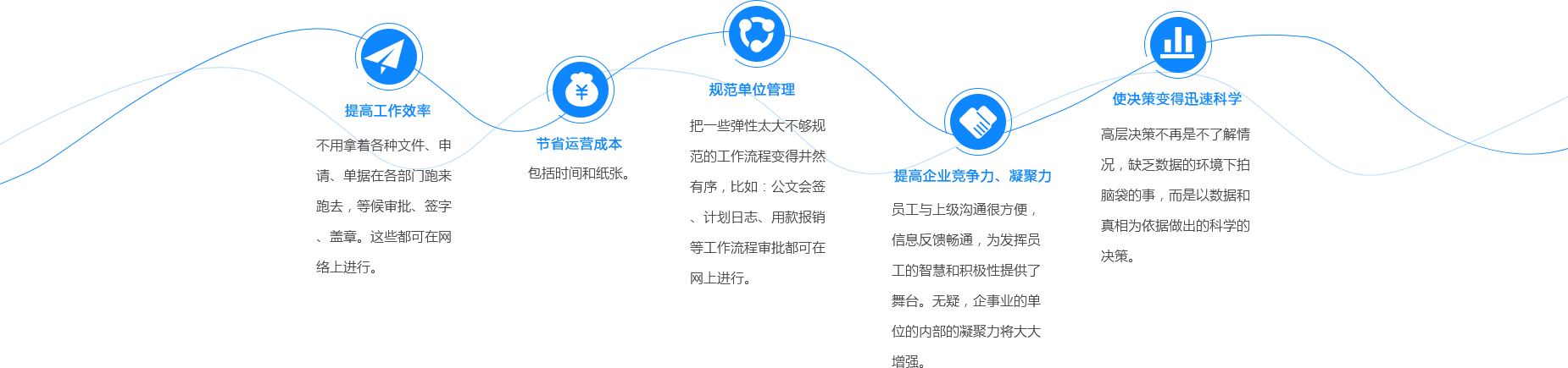 無論是企業(yè)還是政府機關(guān),都會有大量的文案需要處理,復雜的工作流程需要安排,決策者需要依據(jù)紛亂的信息作出重要的決定。擁有一套智能化、信息化的辦公系統(tǒng),對辦公人員和企業(yè)決策者來說,工作效率上的提高是顯而易見的。在網(wǎng)絡(luò)連接千萬家的時代,辦公自動化還使得不同地理位置之間的不同單位或部門之間進行協(xié)同辦公成為可能。今天的中國,“企業(yè)信息化”、“政府部門信息化”都忙得如火如荼,一套優(yōu)秀的辦公自動化(OA)系統(tǒng)將是企事業(yè)單位邁進數(shù)碼時代的“基石”。