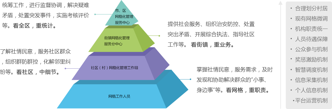 網(wǎng)格化社區(qū)綜合管理平臺運用大數(shù)據(jù)和移動互聯(lián)技術(shù),對網(wǎng)格內(nèi)的人、地、事、物、情、組織的六大基本要素進(jìn)行全面的采集和管理。將數(shù)據(jù)進(jìn)行處理,使靜態(tài)數(shù)據(jù)變成動態(tài)數(shù)據(jù),將數(shù)據(jù)變得可視化、精細(xì)化,共享到職能部門提供支持。推進(jìn)資源整合、綜合研判、指揮調(diào)度、綜合執(zhí)法、聯(lián)勤聯(lián)動、考核督辦、系統(tǒng)運維等工作機(jī)制高效運轉(zhuǎn)。